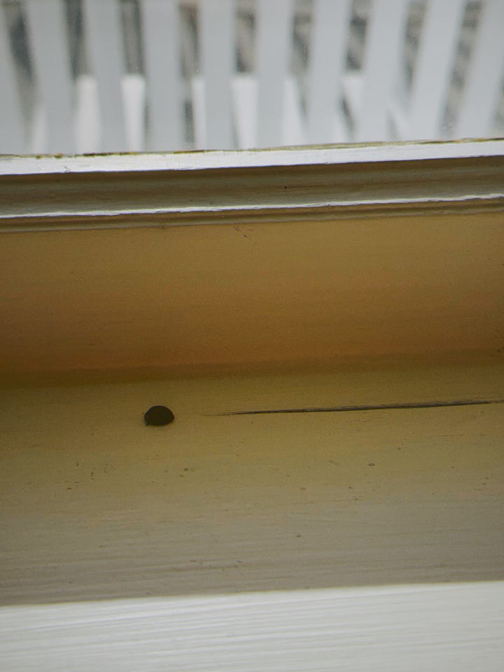The stink bug that flew my attention from my notebook to the ladybug on the windowsill