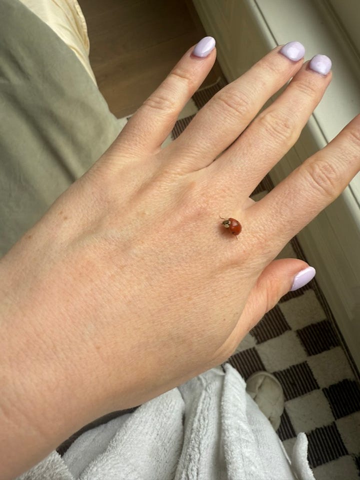 The lady bug I found on the baseboard when I pulled open our bedroom curtains