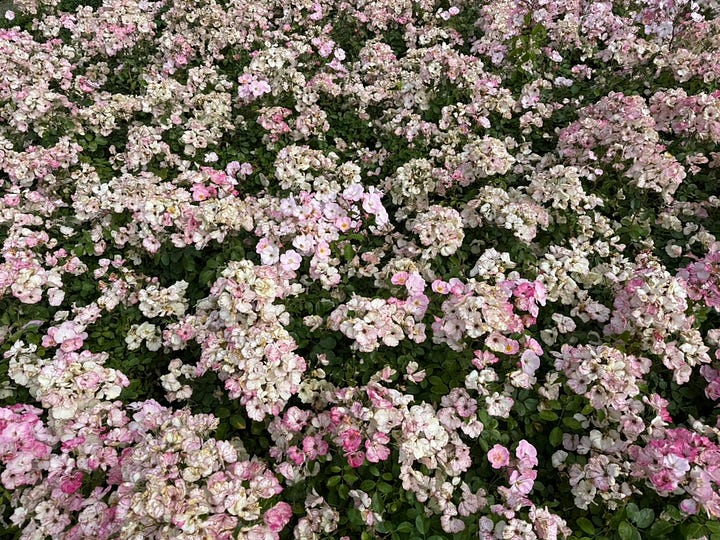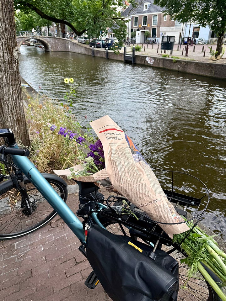 I’m quite proud of it! But what really brought me joy was opening my phone upon returning to my bike with my bouquet to see an unexpected message from Meg with a photo of her own bouquet. So my photo was really a reply bouquet. We should start a movement. Reply bouquets. More people would experience the wonder of watching the evolution of a fresh bouquet of flowers.