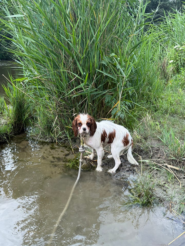 Rubs’ looking up at me with a dirty face from the clay in the water
