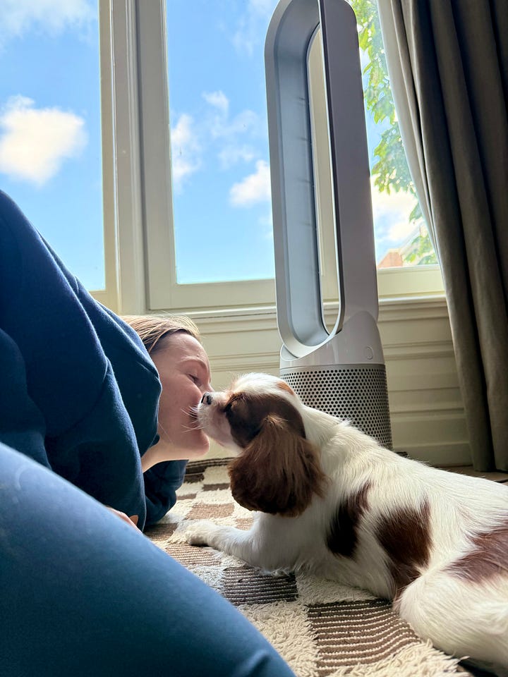 Rubs running up to me to give me kisses in the middle of my call during our picnic